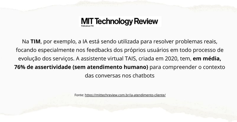 Vou te mostrar mais algumas manchetes, veja a notícia abaixo a Operadora TIM está resolvendo problemas dos clientes com um funcionário virtual com uma assertividade de 76%, sem atendimento humano...