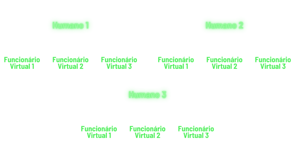 Porém, não queremos substituir os humanos totalmente. Queremos que eles ocupem cargos de liderança sobre os funcionários virtuais.