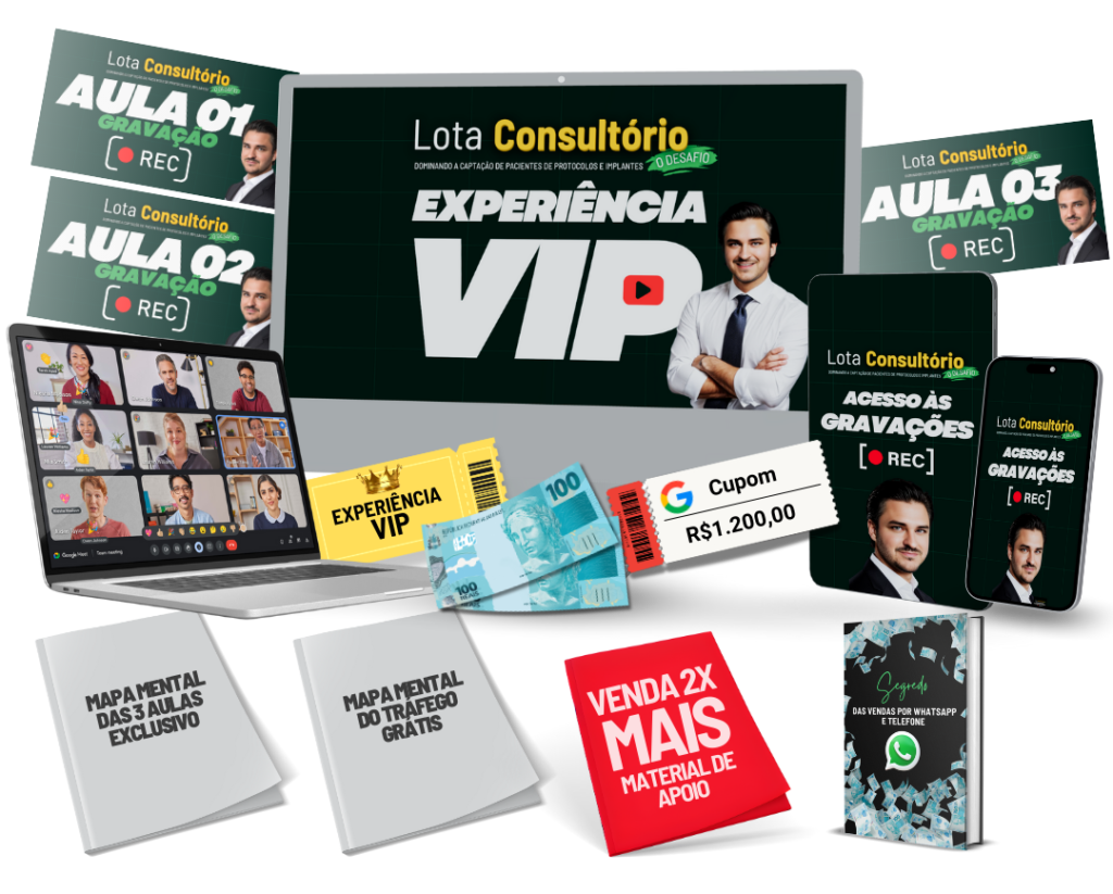 - Treinamento ao Vivo de 3 Dias sobre como lotar seu consultório, com as ferramentas mais modernas, com acesso exclusivo via Google Meet
